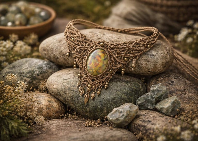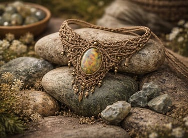 Trabajamos con macramé y piedras naturales de México, honrando su origen y creando joyería artesanal que conecta con la tierra, la tradición y la esencia de quien la porta.